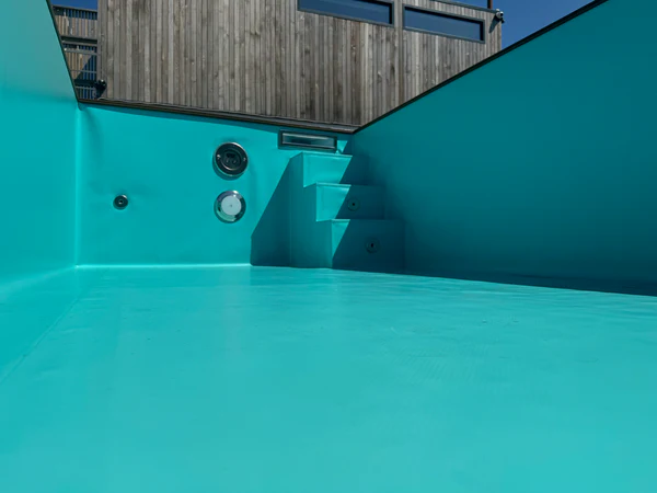 Elementos de piscina con acabado de acero