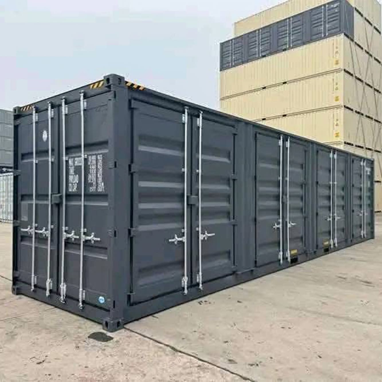Contenedor High Cube de 40 pies con 4 puertas laterales gris oscuro
