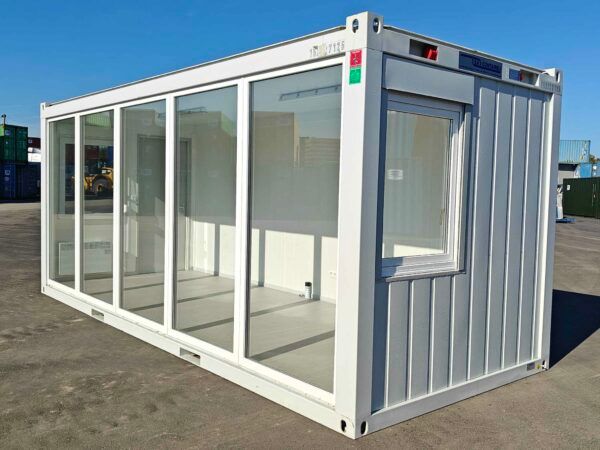 Cabaña personalizada de 9,7 x 3 m | Espacio abierto | Oficina/Comedor | Ventanal | Edificio portátil